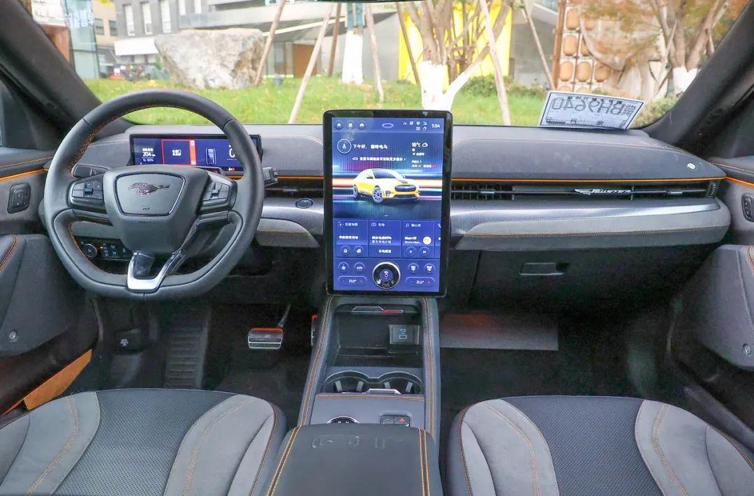來到車內,福特電馬的內飾設計較為簡潔。新車的中控采用經典的T字型的布局,中控臺多種面料的搭配提升了整體的層次感。新車搭載了10.2英寸的液晶儀表以及15.5英寸的豎向中控大屏,車機全系標配高通驍龍8155芯片。