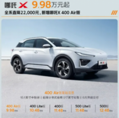 此外,哪吒汽車官宣旗下多款主力車型全系降價。其中,哪吒X全系最高直降22000元,新車9.98萬元起,實現“油電同價”;哪吒AYA全系降價8000元;哪吒S全系降價5000元。