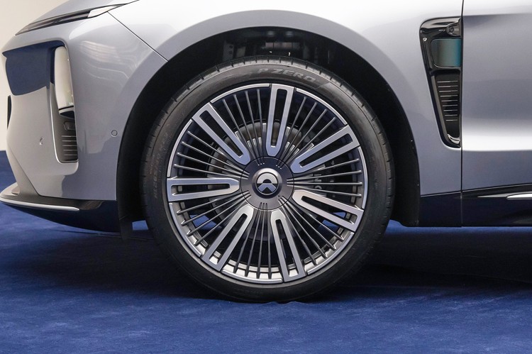 蔚來ET9的側面采用了轎跑風格的大溜背設計,整個車身線條非常舒展。車身尺寸上,新車的長、寬、高分別為5324/2016/1620(mm),軸距為3250mm,屬于標準的D級車。另外,蔚來ET9還配備了多輻輪圈(多種不同造型)、隱藏門把手以及四車門無框設計等,時尚感還是很不錯的。