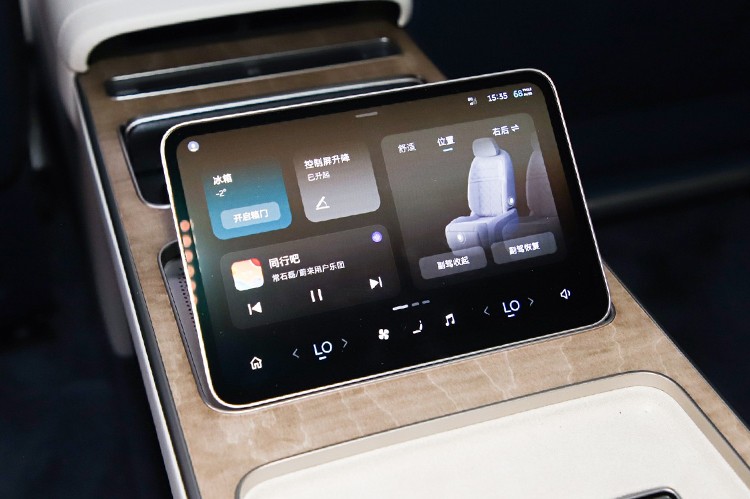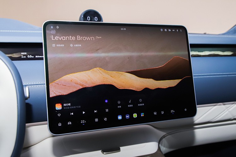 中控配備了15.6英寸的AMOLED懸浮式中控屏,內置SkyOS·天樞整車全域操作系統(tǒng),內部覆蓋了車控、智駕、座艙、移動互聯等多個領域,功能性是非常全面的。值得一提的是,前排還配備了全焦段AR平視顯示系統(tǒng)和NOMI人工智能伙伴,并且首次引入3車外麥克風與NOMI Mate進行聯動,可玩性很高。