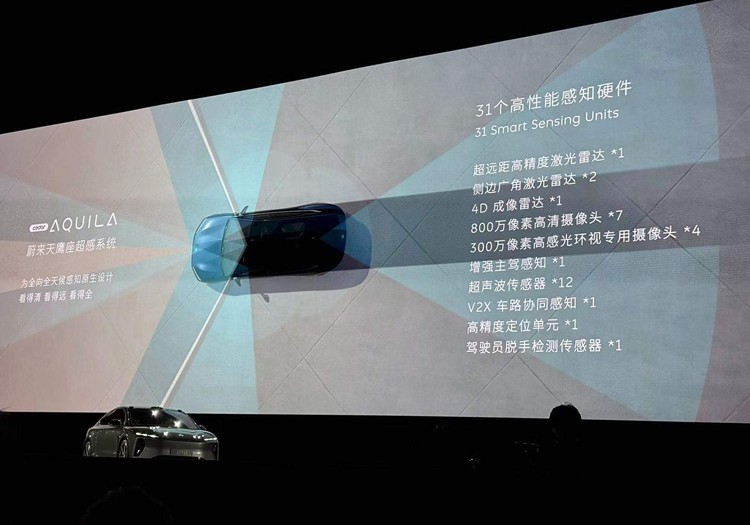 智駕方面,蔚來ET9配備了Aquila 2.0天鷹座超感系統(tǒng),并搭載了2顆自研5nm智駕芯片——神璣NX9031,可實現高速、城區(qū)、泊車和換點場景的智能駕駛全覆蓋,全域領航輔助NOP+可在高速、城市快速路、城區(qū)開放道路上完成自主變道、超車、調速和通行等。
