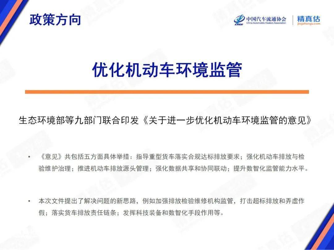 本次《意見》發布的背景,除了環保目標之外,還有解決機動車領域弄虛作假問題,促進公平競爭的因素,這在內卷化的競爭環境中將起到維護市場秩序的正面作用。除了強調嚴管之外,《意見》也提出寬嚴相濟、貨車差異化檢驗、提升數智化水平實現長效治理,以及檢驗機構的監管和退出機制等新辦法。