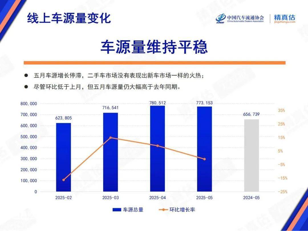 二手車源量顯出疲態,促使行業重新調整增長預期。由置換補貼刺激的一波二手車行情持續時間難以預測。若結合價格來看,五月六月的新車價格戰仍在繼續,降價可能會抑制二手車市場的活躍。從產品方面來看,一批新款車型上市之后,舊款車型并不會快速流入二手市場,實際的二手車交易更多是老舊車輛。