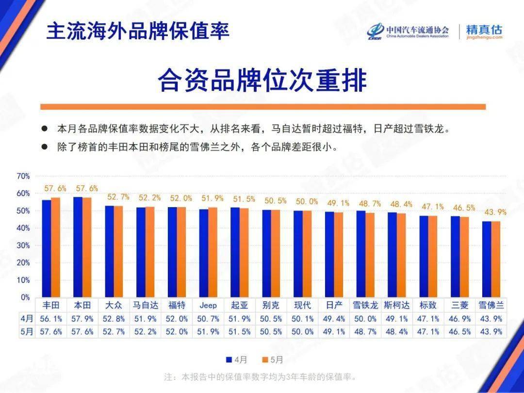2025年6月5日,中國汽車流通協會和精真估聯合發布了《2025年5月中國汽車保值率研究報告》。通過保值率研究旨在反映品牌的產品力、認知度、美譽度等綜合實力,對未來開展回購、置換、租賃、金融、新車定價參考等相關業務提供重要數據參考,從而降低業務風險,提升經營效率。