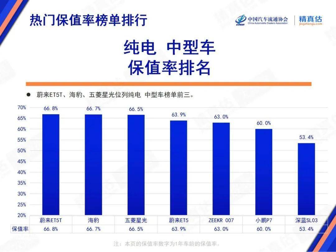 作為蔚來主打的中型車,蔚來ET5T憑借動感的掀背造型、卓越的產品技術能力、獨特的電池商業模式與服務體驗,位列純電中型車保值率第一名。比亞迪海豹、五菱星光位列榜單第二、第三名。