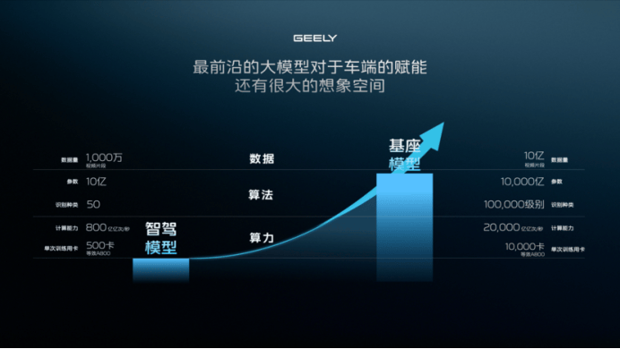 還有在數據上,吉利具備L2級智能安全輔助駕駛能力的車輛已超750萬輛,位居中國車企第一,實際行駛數據累計百億公里,利用吉利自研AI-Drive 大模型構建虛實融合 “世界模型”,能讓輔助駕駛訓練效率提升30倍。在算力、算法、數據上的領先優勢,將為吉利奠定在智能化時代領先的基礎。