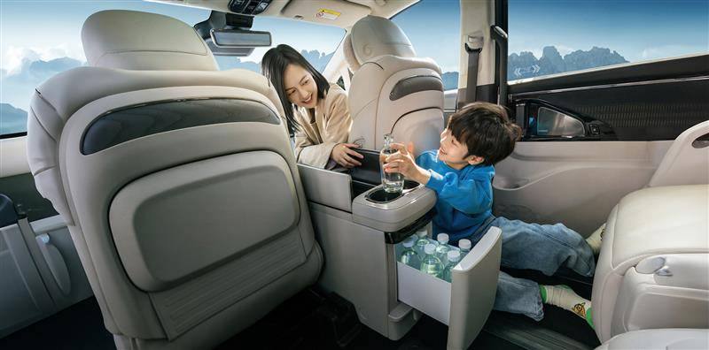 此外二排雙零重力座椅目前限時免費升級,全車采用全粒面NAPPA真皮座椅,座墊寬度546mm、長度525mm,靠背寬度534mm、長度720mm,能夠帶來更寬大舒適的乘坐體驗。并且均支持16點按摩、通風、加熱、防夾等功能。而雙開門智能大冰箱,容積達到9L,同時可做到零下6攝氏度-50攝氏度溫控表現,前排和后排都可輕松拿取物品。要知道,最新上市的入門版未配備冰箱,中配開始配備,雖然是壓縮機但最低溫度僅做到0-7攝氏度。