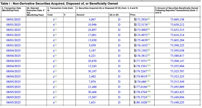 IT之家8 月 6 日消息,美國證券交易委員會(SEC)披露的文件顯示,英偉達創始人兼 CEO 黃仁勛于 8 月 1 日至 8 月 5 日期間累計出售了約 22.5 萬股公司普通股。這些股票的成交價格區間為每股 171.5924 至 180.1028 美元,黃仁勛通過此次交易套現約 4000 萬美元(約合 2.88 億元人民幣)。交易完成后,黃仁勛仍持有近 7345 萬股英偉達普通股。