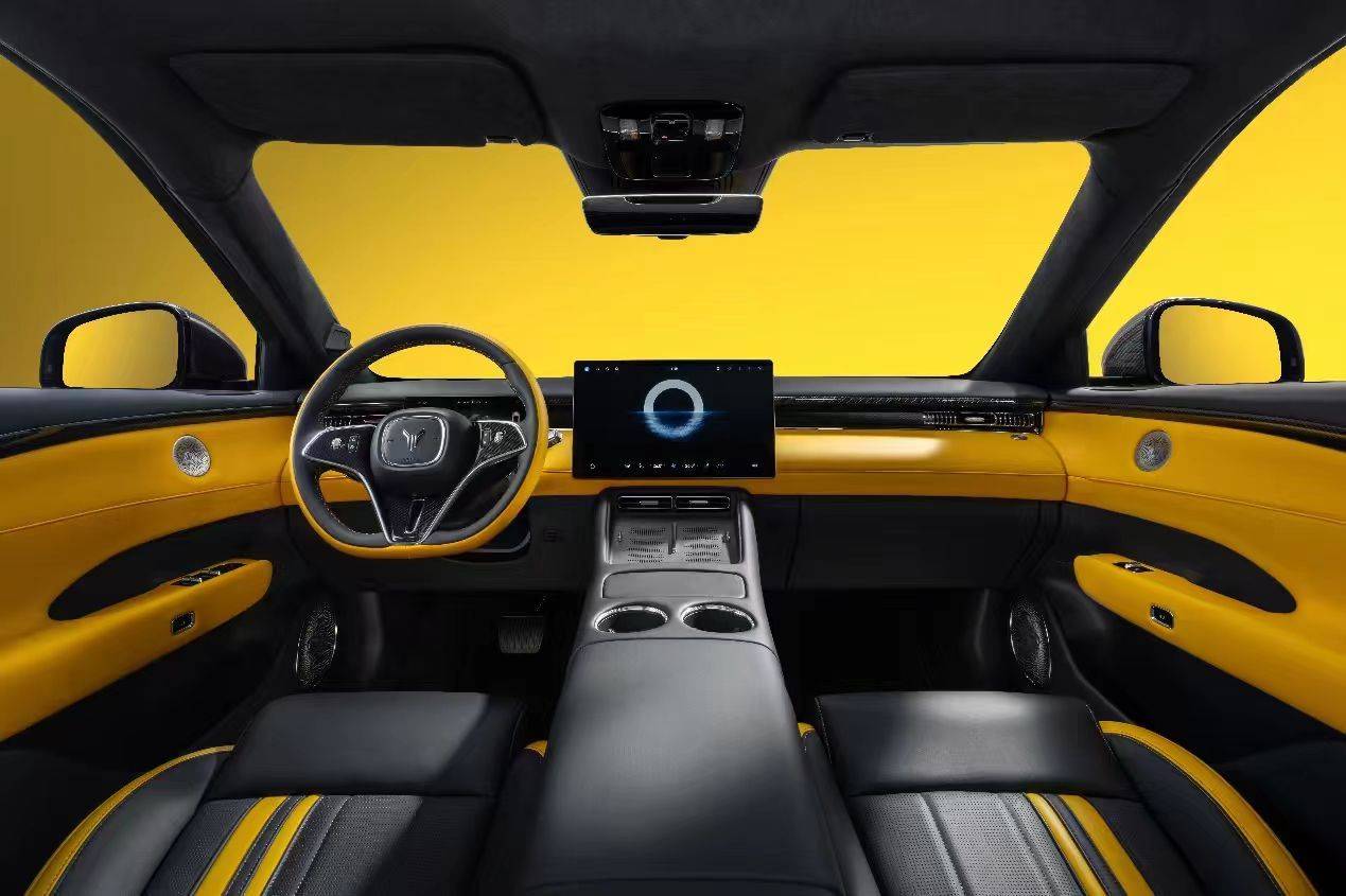 內飾是玄金雙拼撞色設計,一下子就把座艙的激情氛圍點燃了。儀表臺、車門護板、方向盤這些經常摸到的地方,都用了黃色超纖包裹,A/B/C 柱和頂棚是仿麂皮材質,觸感和質感都很豪華。NAPPA 環抱式運動座椅是頭層牛皮做的,貼合身體還能在激烈駕駛時牢牢護住你,外后視鏡、方向盤這些地方還有真碳纖維組件,紋理特別顯高級。